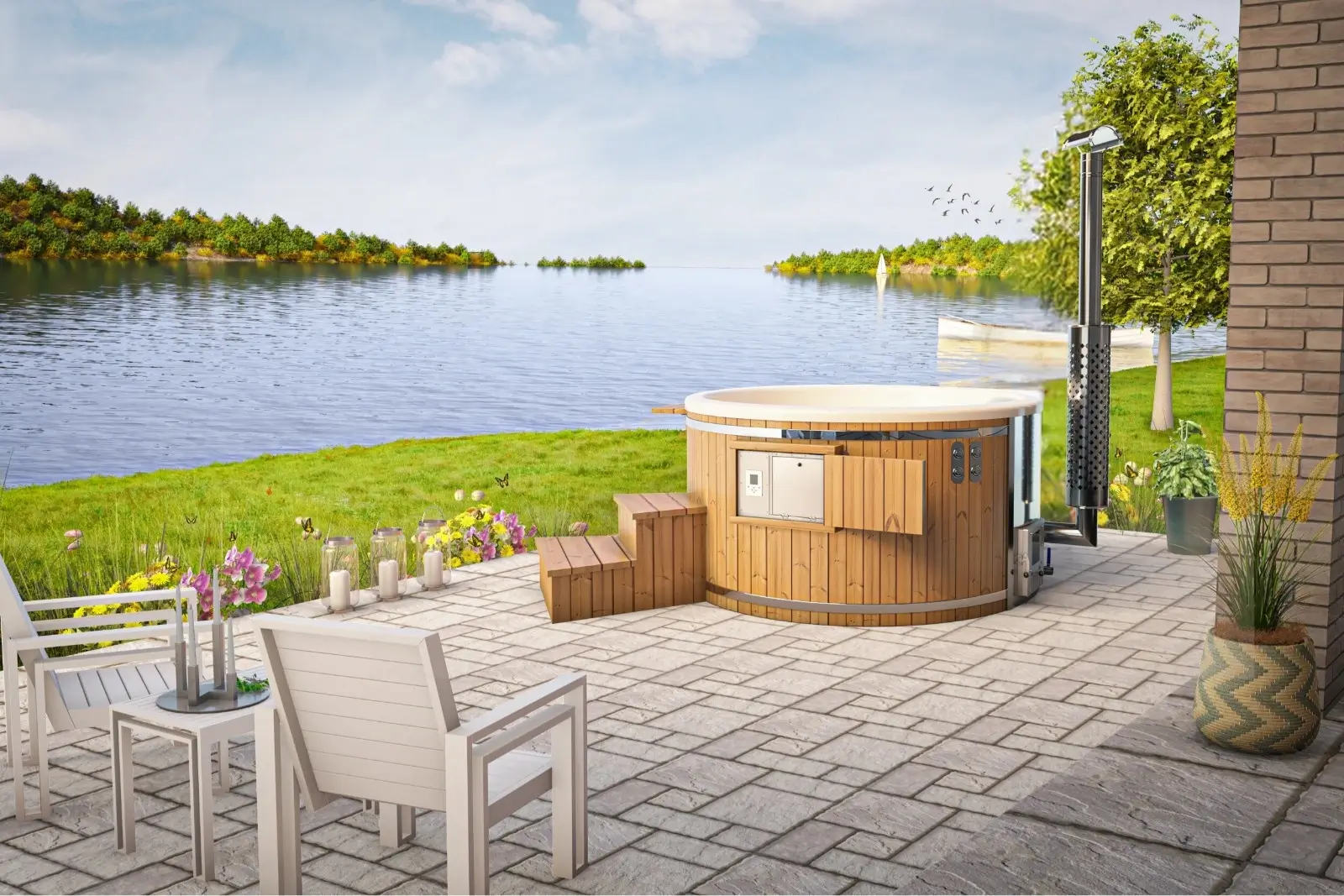 An electric heater can be installed alongside the water massage system to maintain the desired water temperature. We also offer pellet heating systems for hot tubs, which can be controlled and monitored remotely using a smartphone app, ensuring a consistent temperature even when you’re away from home. The system features an integrated frost monitor for added winter protection.